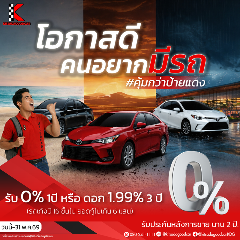 เว็บไซต์ Kitsadagoodcar (กฤษฎากู๊ดคาร์) เป็นเว็บไซต์ ตลาดรถ ที่รวบรวม รถมือสอง หากต้องการขายรถมือสอง รถบ้าน หรือจะเทิร์นก็ได้เช่นกัน ที่เรามีหลากหลายยี่ห่อ แต่ละคันคัดสรร มาเป็นอย่างดีจึงมั่นใจได้ว่าลูกค้าจะได้รับรถบ้าน รถมือสองที่ดีเหมาะสมกับราคาไปอย่างแน่นอน พร้อมกันบริการจัดไฟแนนซ์ มีธนาคารรองรับกว่า 10 ให้เลือกกัน อีกทั้งดอกเบี้ยพิเศษสุดกว่าใคร หากต้องการรถมือสองคุณภาพดีสักคันก็ขอเชิญเลือกชมได้ที่ โชว์รูมรถบ้าน รถมือสองของเรา หากต้องการรายละเอียด หรือต้องการข้อมูลเพิ่มเติมก็สามารถติดต่อ บริษัท กฤษฎากู๊ดคาร์ ได้ที่ 080-24-11111 ทางเรายินดีเป็นอย่างยิ่ง