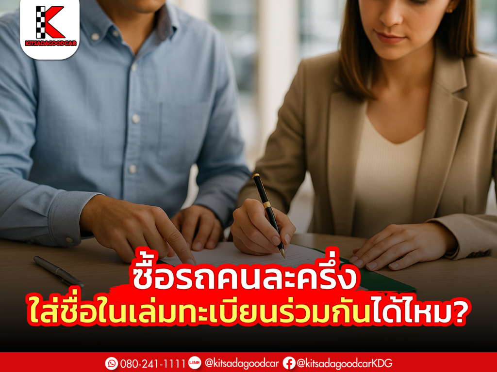 ปัจจุบันการ “ซื้อรถแบบหารกัน” หรือ ซื้อรถคนละครึ่ง ไม่ว่าจะซื้อกับ แฟน สามี–ภรรยา เพื่อน หรือพี่น้อง กลายเป็นเรื่องที่พบได้บ่อยขึ้นมาก โดยเฉพาะในยุคที่ราคารถสูงขึ้นและภาระค่าใช้จ่ายต้องแบ่งเบา การซื้อร่วมกันจึงเป็นตัวเลือกที่ช่วยให้ผ่อนสบายขึ้น แต่คำถามสำคัญที่หลายคนสงสัยคือ “ซื้อรถคนละครึ่ง ใส่ชื่อในเล่มทะเบียนร่วมกันได้ไหม?” อัปเดตคำตอบตามกฎหมายจริง วิธีดำเนินการเอกสาร ข้อดี–ข้อเสีย รวมถึงคำแนะนำเพิ่มเติมก่อนตัดสินใจ เพื่อให้คุณวางแผนซื้อรถร่วมกันได้อย่างไม่เสี่ยงในอนาคต