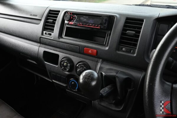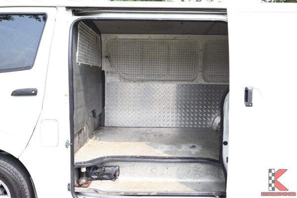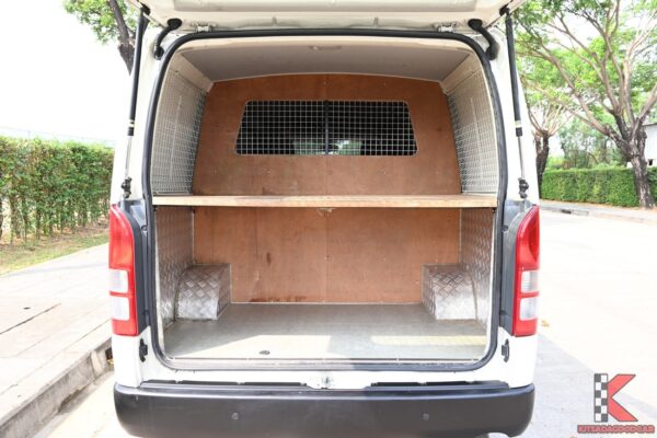รายละเอียดรถตู้เตี้ย Toyota Hiace มือสอง ปี 18 Economy ราคา 559,000 บาท สีขาว เกียร์ธรรมดา เครื่องดีเซล 3000 cc ไมล์น้อย 7 หมื่นโล ในตู้ทำบิ้วอิน วางของได้เป็นสัดส่วน