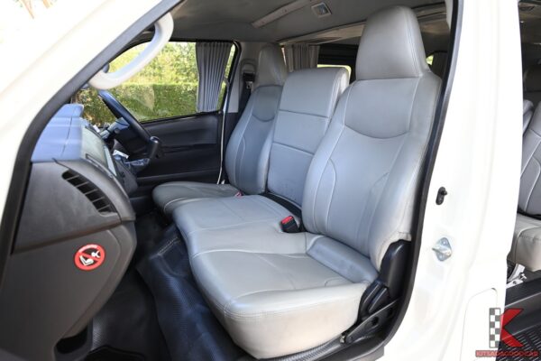 รายละเอียดรถตู้ Toyota Hiace มือสอง ปี 16 GL ตัวเตี้ย ราคา 619,000 บาท สีขาว เกียร์ธรรมดา เครื่องดีเซล 3000 cc เบาะ VIP 9 ที่นั่ง รถใช้ในครอบครัว ไม่เคยวิ่งรับจ้าง ป้ายฟ้าแท้ๆ