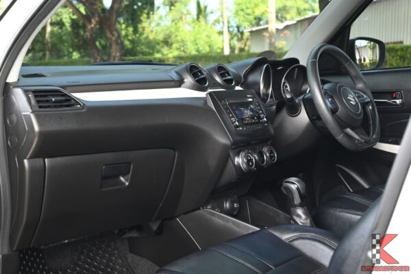 รายละเอียดรถเก๋ง Suzuki Swift มือสอง ปี 2018 GLX ราคา 379,000 บาท สีขาว เกียร์ออโต้ เครื่องเบนซิน 1200 cc ไมล์ 5 หมื่นโล ออฟชั่นเต็ม ชุดอแต่งรอบคัน รถมือเดียวสภาพดี