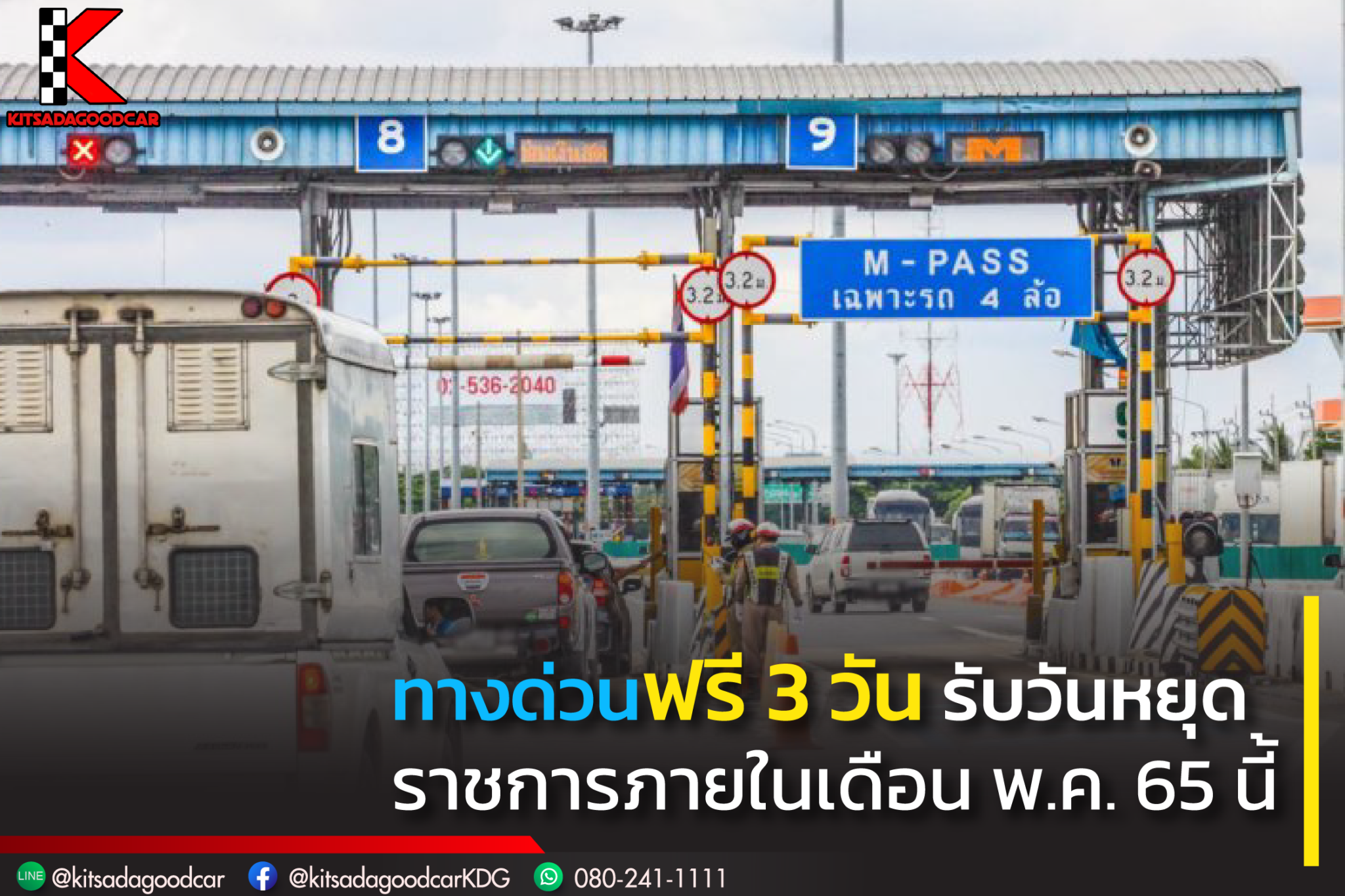 การทางพิเศษ แห่งประเทศไทย (กทพ.) กระทรวงคมนาคม ประกาศยกเว้นค่าผ่านทางพิเศษในวันหยุดราชการประจำปีรวมทั้งสิ้น 3 วันภายในเดือน พฤษฎาคม 2565 นี้