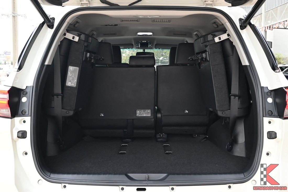 รูปแบบเบาะ: แถว 3 พับแขวนขึ้นด้านข้าง (เอกลักษณ์ Toyota) ได้ความสูงจากพื้นถึงเพดานเต็มที่ การใช้งานจริง: วางต้นไม้ทรงสูง หรือซ้อนกระเป๋าเดินทางใบใหญ่ได้ 4-5 ใบ มีฝาท้ายไฟฟ้าช่วยผ่อนแรง