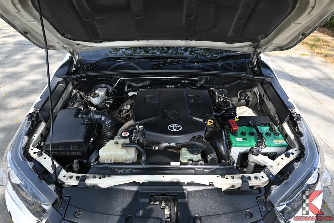 หากคุณกำลังมองหารถกระบะที่ "ปีใหม่ สภาพดี และใช้งานได้หลากหลายกว่าปกติ" Toyota Revo คันนี้คือคำตอบครับ จากการวิเคราะห์ภาพช่วงล่างมีการเสริมแหนบแผ่นหนา (แหนบกระดาน) เพิ่มเข้ามา 3 แผ่น ซ้อนอยู่ใต้ชุดแหนบเดิม 5 แผ่น ทำให้มีแหนบรวม 8 แผ่น ต่อข้าง ซึ่งเป็นสูตรสำเร็จที่สมดุลมากสำหรับการบรรทุกหนัก 2-3 ตัน โดยที่รถยังไม่กระด้างจนเกินไปสำหรับการวิ่งรถเปล่า