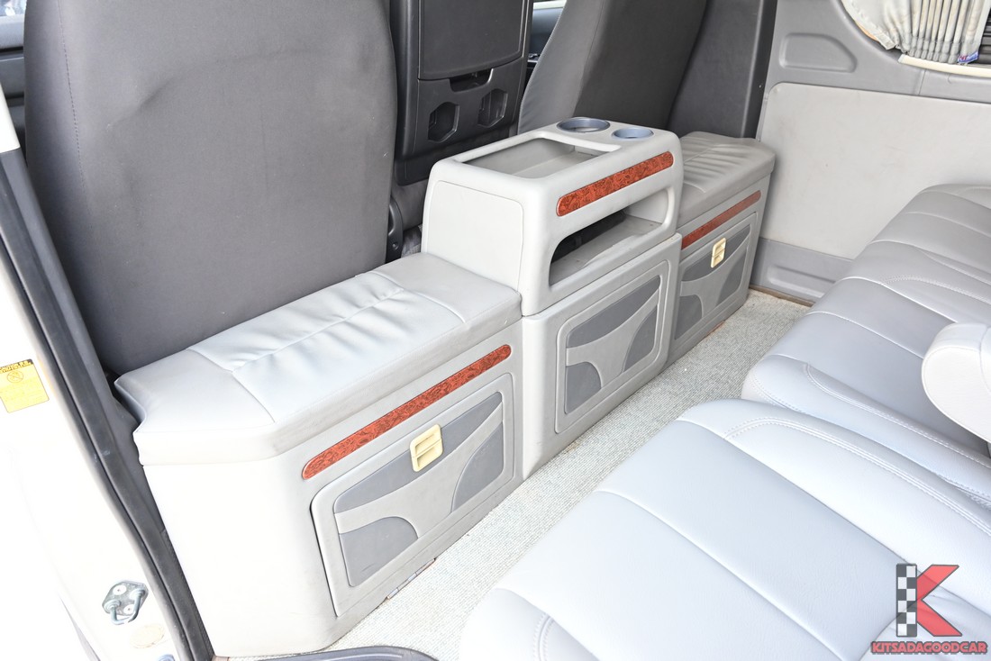 เครื่องยนต์ 1KD-FTV 3.0 ลิตรเป็นเครื่องยนต์บล็อกใหญ่ที่ให้แรงบิดดีเยี่ยมแม้บรรทุกเต็มลำ ประโยชน์คือช่วยให้การเร่งแซงหรือการขับขึ้นเขามีพละกำลังเหลือเฟือ ไม่ต้องเค้นเครื่องยนต์หนักเท่ารุ่น 2.5 ลิตรเดิม การตกแต่งห้องโดยสารแบบ VIP 9 ที่นั่งมีการเปลี่ยนเบาะจากมาตรฐาน 15 ที่นั่ง เป็นเบาะ VIP ขนาดใหญ่ ประโยชน์คือมอบความสบายระดับพรีเมียมให้ผู้โดยสาร ลดความเมื่อยล้าในการเดินทางไกล และเพิ่มพื้นที่วางขา (Legroom) ได้อย่างมหาศาล ระบบปรับอากาศแยกส่วน (Front & Rear AC)ใช้ระบบแอร์และช่องลมเดิมจากโรงงาน ประโยชน์คือความมั่นใจในเรื่องความทนทานและการซ่อมบำรุงที่ง่ายตามศูนย์บริการทั่วไป อะไหล่หาง่ายและราคาไม่สูง คอนโซลกลาง Wood Grainงานติดตั้งกล่องคอนโซลระหว่างเบาะคู่หน้า ประโยชน์คือเพิ่มฟังก์ชันการใช้งานในการวางแก้วน้ำและเก็บของกระจุกกระจิกให้เป็นระเบียบ เรียบร้อยกว่ารถมาตรฐานโรงงาน